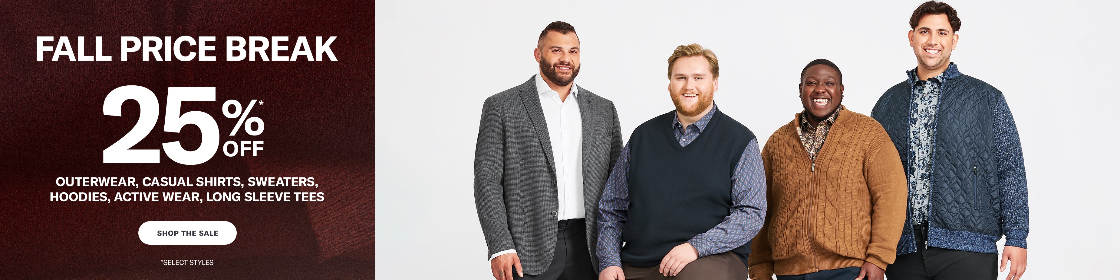 Looking for value without sacrificing fit? Our big and tall sale section features year-round savings on wardrobe staples — from dresswear to active wear. These aren’t clearance leftovers — just reliable fits, popular styles, and trusted quality from leading menswear brands at prices that make sense. Whether you’re after sale shirts or dress pants, shop deals that keep you looking sharp and feeling confident — for less.