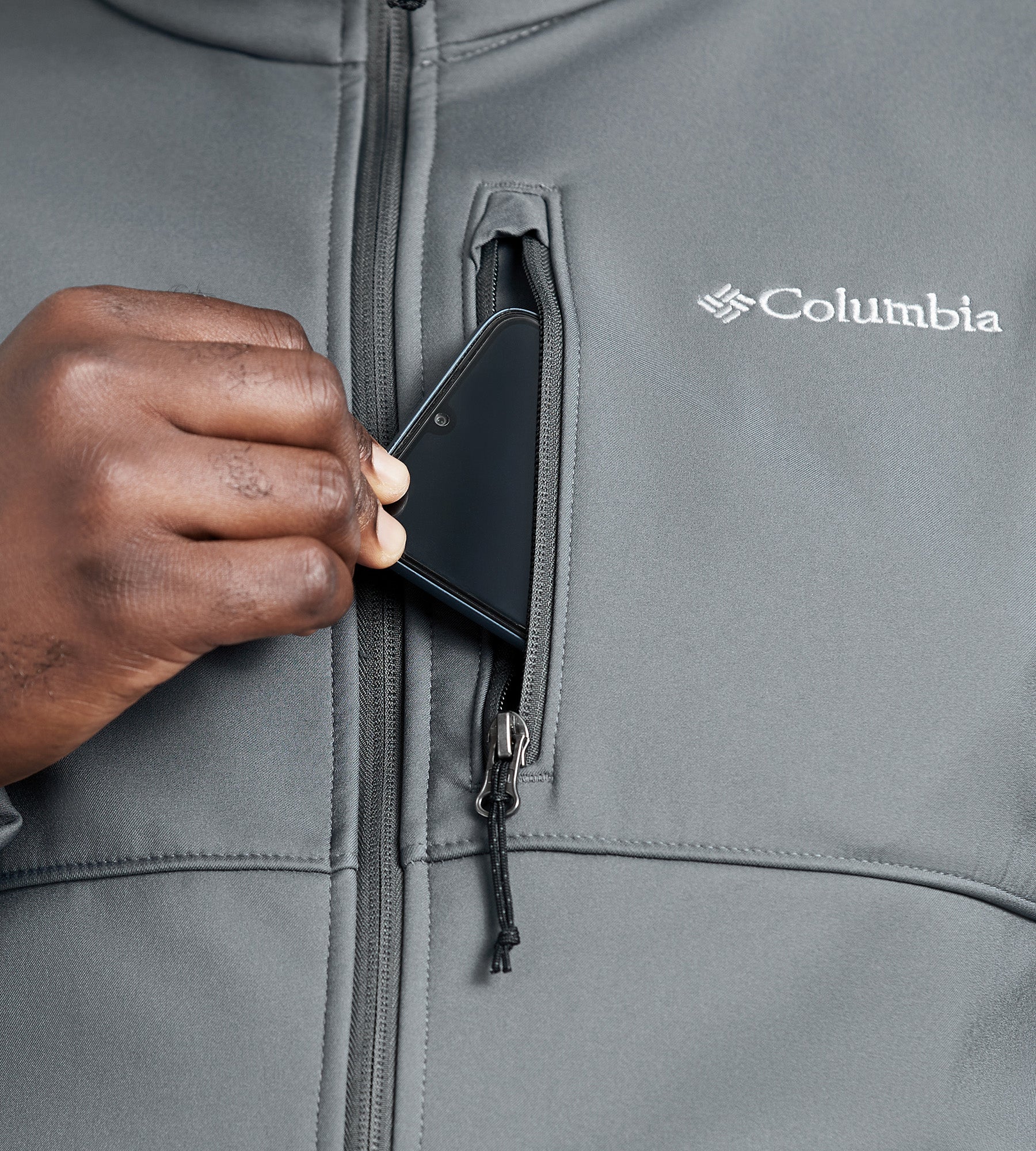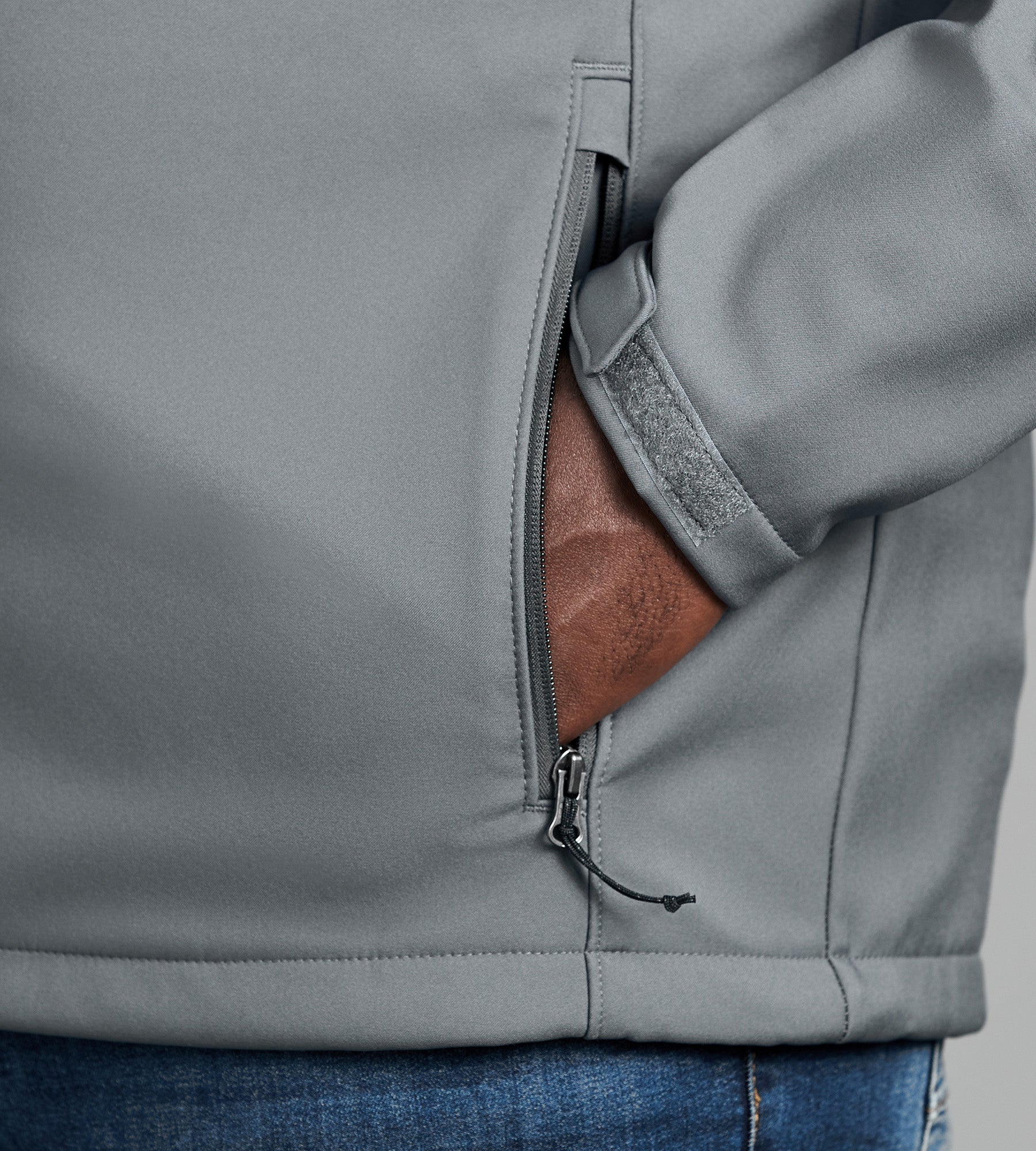 - Details Bonded Softshell Water and Wind-Resistant Adjustable Sleeve Cuffs Zippered Hand Pockets Zippered Chest Pocket Drawcord Adjustable Hem Machine Washable